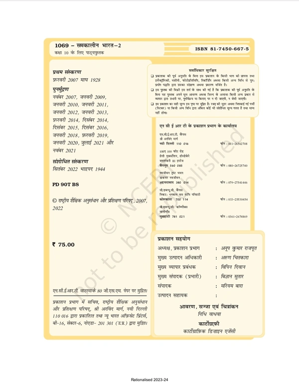 10th Class Bhugol Subject book Samkalin Bharat-II (1069)