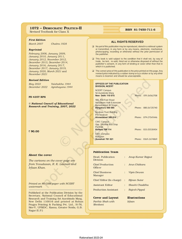 10th Class Rbse/Ncert Politics Subject book Democratic Politics-II (1072)