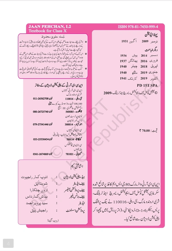 10th Class Rbse/Ncert Urdu Subject book Jaan Pehchaan