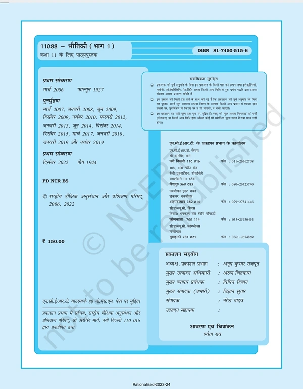 11th Class Rbse/Ncert Bhotik Vigyan Subject book Bhotiki Bhag-1