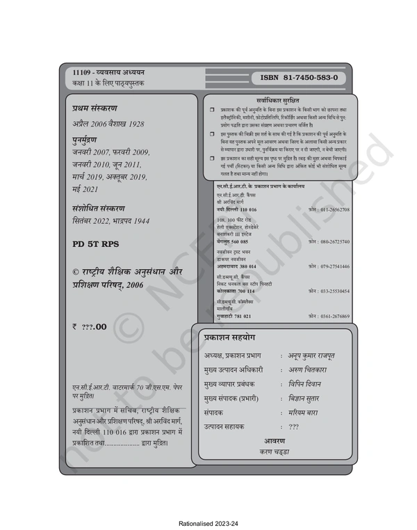 11th Class Rbse/Ncert Commerce Subject book Vyavasai Adhyaan (11109)