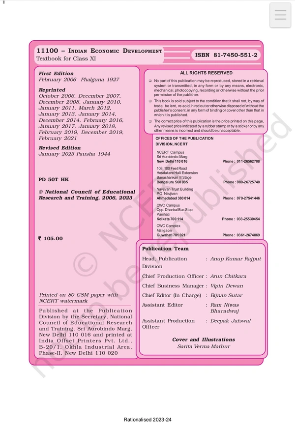 11th Class Rbse/Ncert Exonomics Subject book Indian Economic Development(11100)