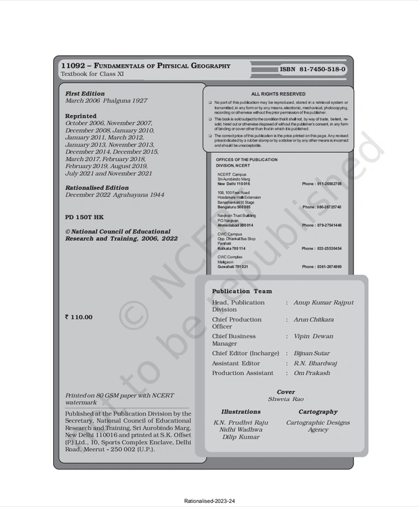 11th Class Rbse/Ncert Geography Subject book Fundamental Of Physical Geography