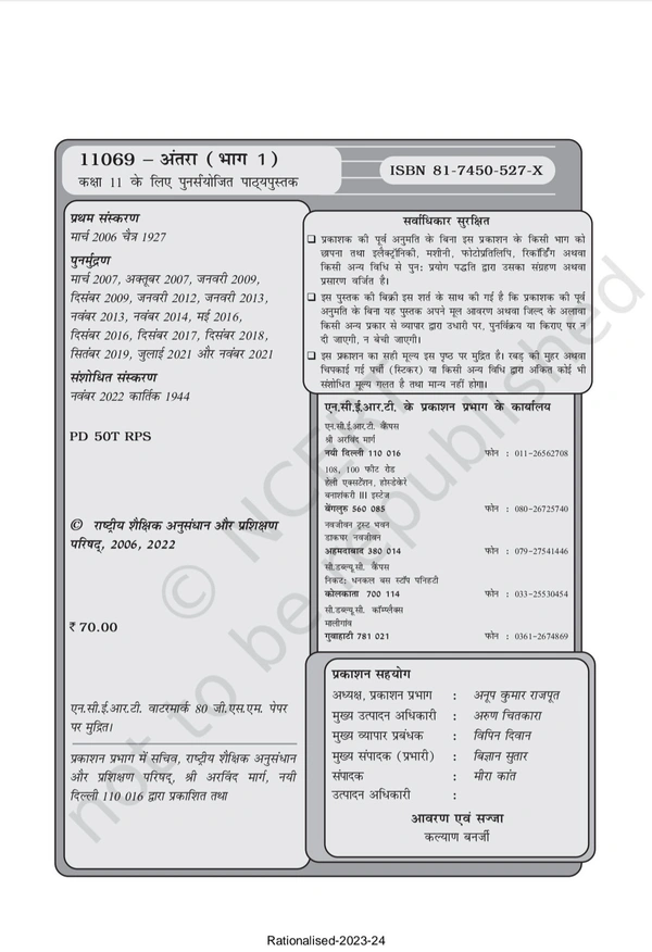 11th Class Rbse/Ncert Hindi Sahitya Subject book Antra Bhag-1