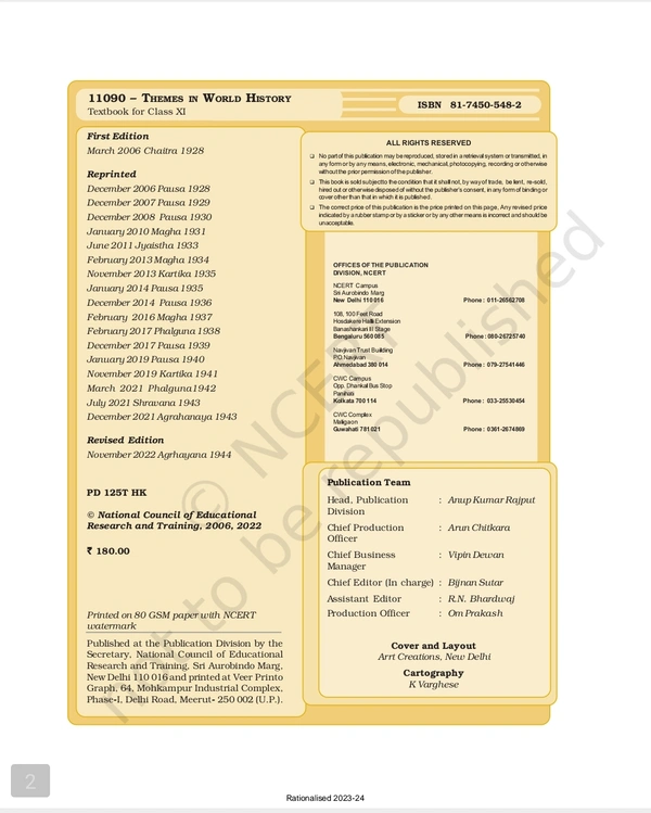 11th Class Rbse/Ncert Hostory Subject book Themes In World History(11090)