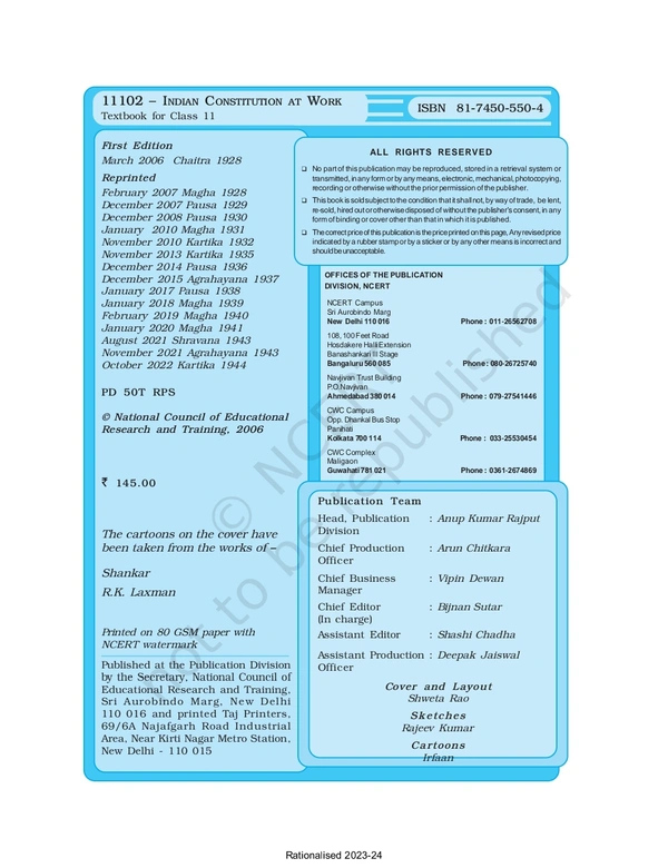 11th Class Rbse/Ncert Politics Subject book Indian Constitution At Work (11102)