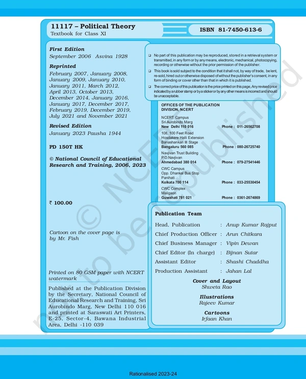 11th Class Rbse/Ncert Politics Subject book Political Theory (11117)