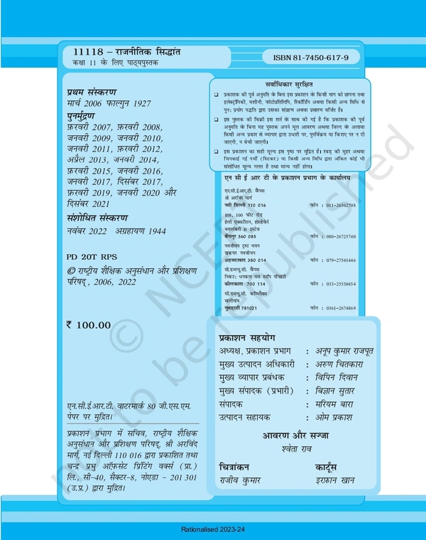 11th Class Rbse/Ncert Rajniti Subject book Rajnitik Siddhant(11118)