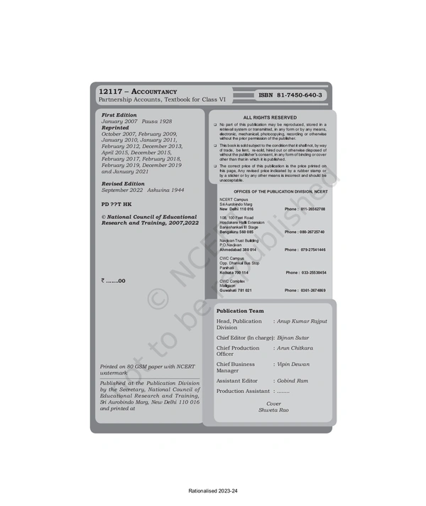 12th Class Rbse/Ncert Accountancy Subject Book Partnership Accounts (12117)