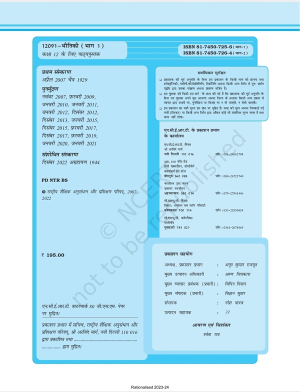 12th Class Rbse/Ncert Bhotiki Bhag-1 book (12091)