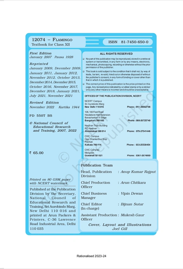 12th Class Rbse/Ncert English Compulsary Subject book Flamingo(12074)