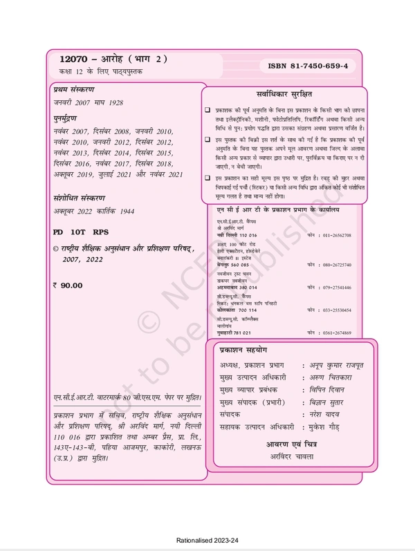 12th Class Rbse/Ncert Hindi Subject book Aroh Bhag-2(12070)