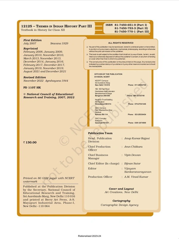 12th Class Rbse/Ncert History Subject book Themes In World History Part-3 (12125)