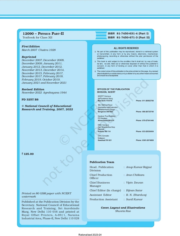 12th Class Rbse/Ncert Physics Part-2 book (12090)