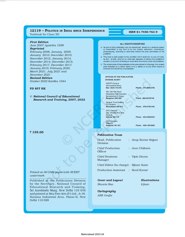 - 12th Class Politics subject book Politics in India Since Independence in English