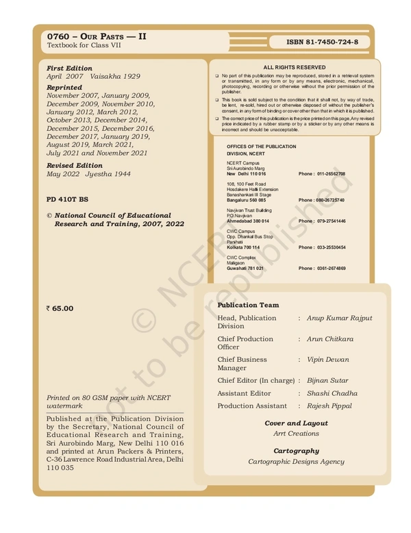 7th Class Ncert/Rbse History Book Our Past-II