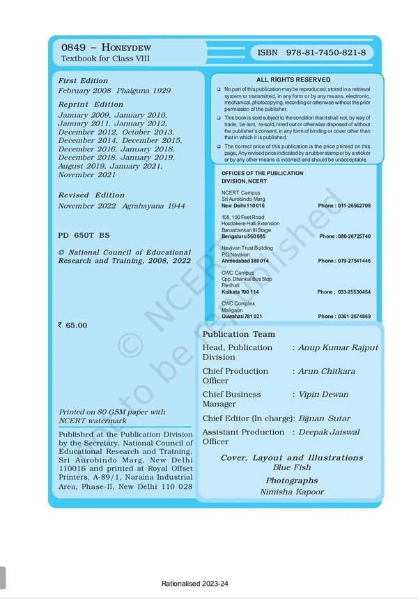 8th Class Rbse/Ncert English Book Honeydew