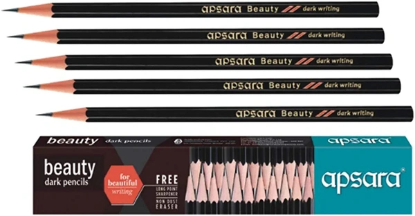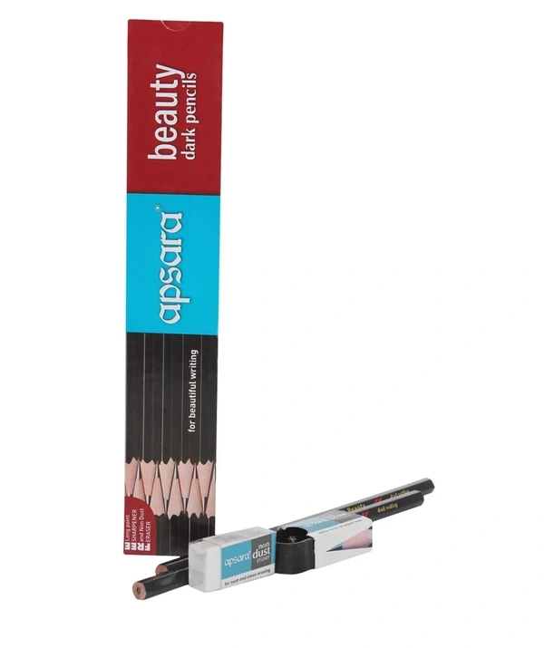Pack of 10 - 172 mm length Pencils, Free 1 Long point sharpener and 1 Non Dust Eraser