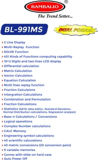 Bambalio BL-991MS 401 Functions and 2 Line LCD Display Scientific Calculator