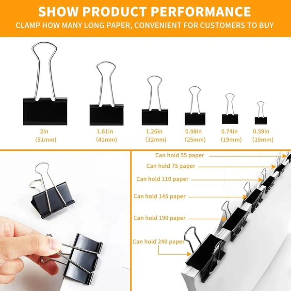 • These Binder Clips offer Stable & Strong Holding Performance. The clips doesn't allow any sort of wear & tear to the paper. The plating on the surface doesn't allow the Clips to develop rust.