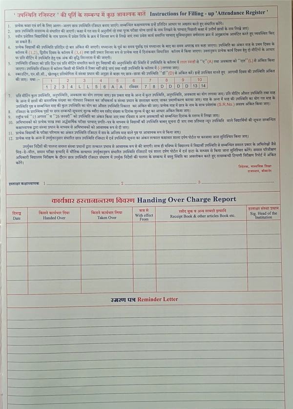 Chhatra Upastithi Register 50 Naam/student Attendance Register 50Name S-104 Rastogi