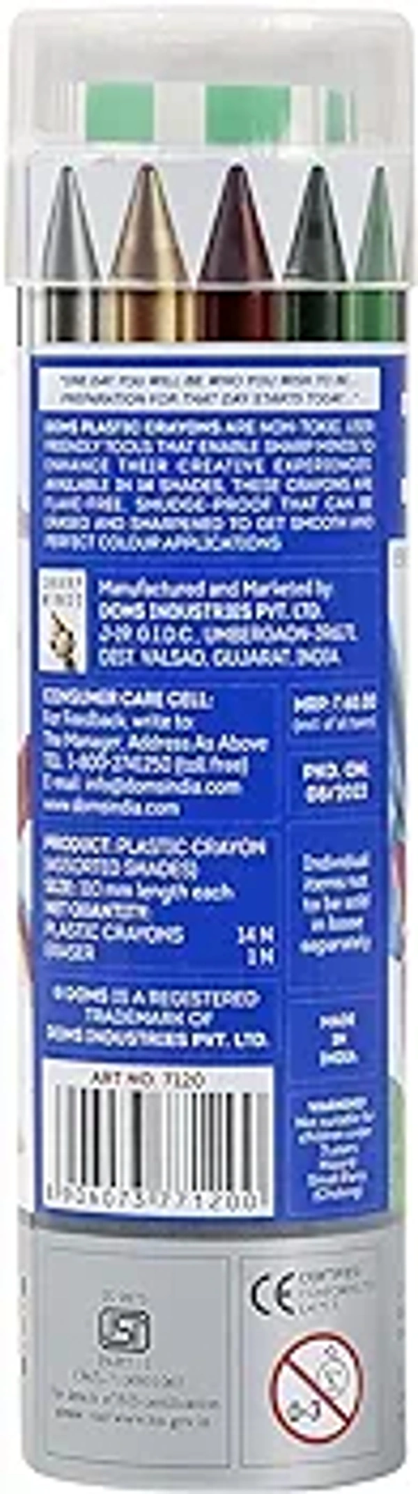 Doms 14 Shades Erasable Plastic Crayons Round Tin Box