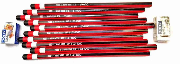 Doms a1 pencil set of 10 pencils with 1 eraser and 1 sharpner